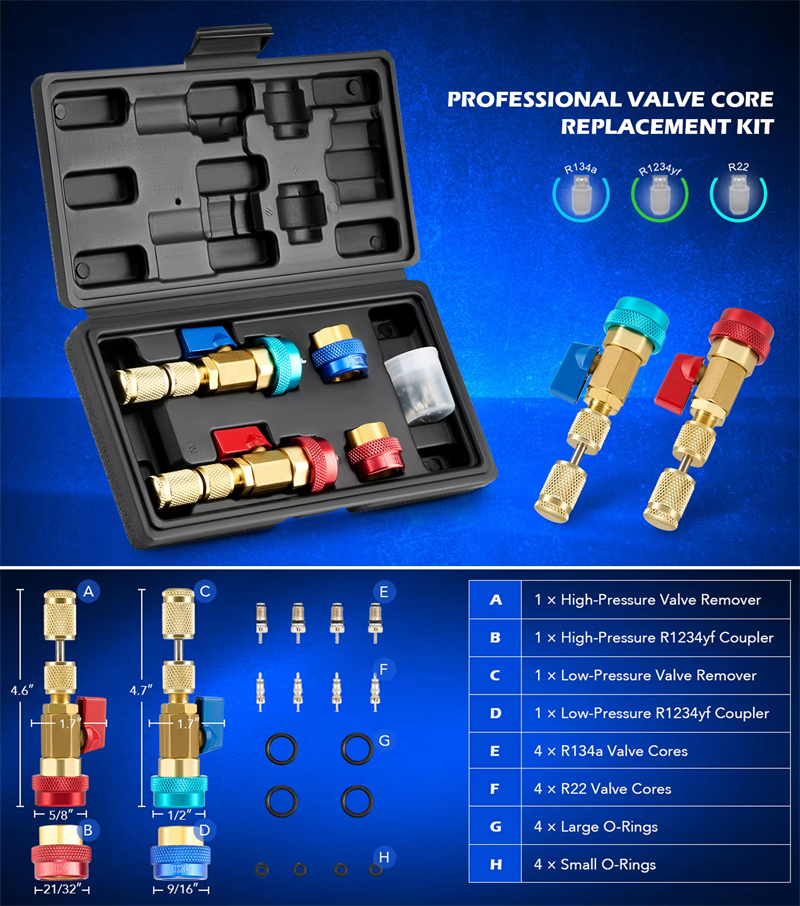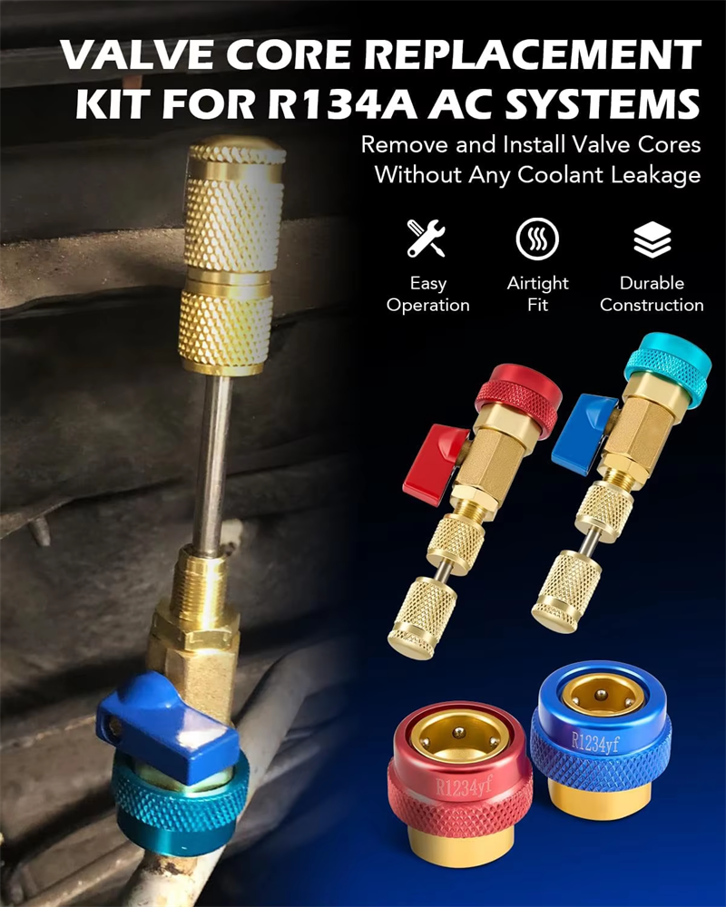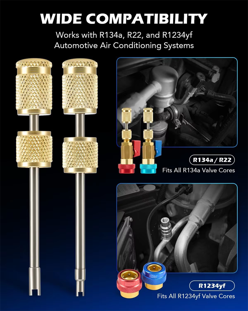 Auto R134a R1234yf R22 Valve Core Installer/Remover Tool Kit for Vehicle Air Conditioning Systems Automotive Vehicle Tools